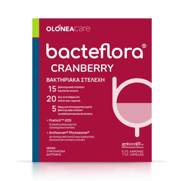 OLONEA bacteflora CRANBERRY για προφύλαξη από ουρολοιμώξεις με προβιοτικά, πρεβιοτικά, μεταβιοτικά και φυτοσωμιακό εκχύλισμα cranberry.