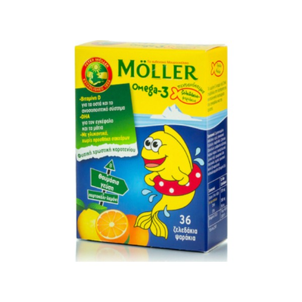 Τα Ψαράκια Ωμέγα-3 Moller’s με ιχθυέλαιο είναι πολύ εύγευστα ζελεδάκια με φυσικά ωμέγα-3 και φυσική βιταμίνη D3, όπως και το μουρουνέλαιο Moller’s! Αποτελούν υγιεινό συμπλήρωμα διατροφής, περιέχουν συστατικά απαραίτητα για τη σωστή ανάπτυξη και λειτουργία του νεαρού οργανισμού και αποτελούν το ιδανικό υγιεινό συμπλήρωμα για τα παιδιά εκείνα που δυσκολεύονται να πάρουν το μουρουνέλαιό τους. Ακόμα και τα πιο δύσκολα παιδιά θα λατρέψουν τα ζελεδάκια MOLLER’S!