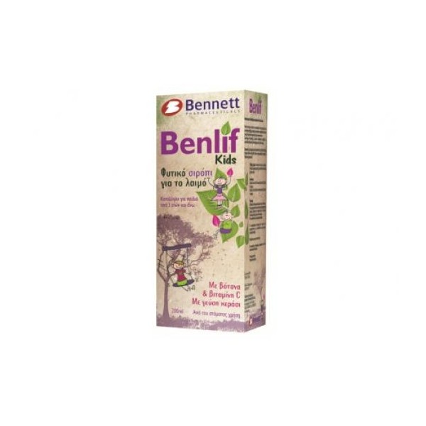 Το Benlif Kids, περιέχει Κισσό, Αλθαία, Φραγκοστάφυλο, Μέλι Ακακίας και Φρουκτόζη. Είναι συμβατό με ομοιοπαθητικές θεραπείες, κατάλληλο για διαβητικούς ασθενείς, έχει γεύση Κεράσι και δεν περιέχει οινόπνευμα, ζάχαρη και χρωστικές.