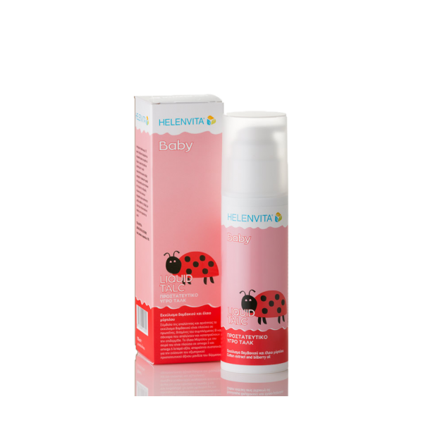 Το Helenvita Liquid talc είναι ένα λεπτόρρευστο γαλάκτωμα με 1/3 φυσική πούδρα από καλαμπόκι που απορροφάται αμέσως και αφήνει το δέρμα του μωρού σας απαλό και προστατευμένο. Η υψηλή περιεκτικότητα σε φυσική πούδρα προσροφά την επιφανειακή υγρασία που δημιουργείται μέσα στη πάνα και στις πτυχώσεις της επιδερμίδας.Απλώνεται πολύ εύκολα και απορροφάται αμέσως αφήνοντας τη μεταξένια αίσθηση της πούδρας.Δεν περιέχει ταλκ. Απόλυτα απαλό και ασφαλές για τη περιποίηση του μωρού.