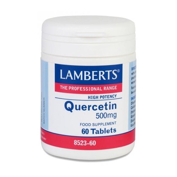 Η Quercetin αποτελεί ένα από τα πιο ενεργά φλαβονοειδή. Πολλά φυτά με φαρμακευτικές ιδιότητες, οφείλουν μεγάλο μέρος της δραστηριότητάς τους στην υψηλή περιεκτικότητα σε αυτό το φλαβονοειδές. Πολλές ερευνητικές μελέτες αποδεικνύουν πολλαπλούς μηχανισμούς δράσης της ουσίας αυτής όπως η αναστολή της παραγωγής και της απελευθέρωσης της ισταμίνης και η πανίσχυρη αντιοξειδωτική της δράση. Πιο πρόσφατες μελέτες καταδεικνύουν ευεργετική δράση στην διατήρηση της υγιούς λειτουργίας του καρδιαγγειακού συστήματος.Η Quercetin υπάρχει σε πολλά φρούτα και λαχανικά, ιδιαιτέρως στα μήλα και τα κρεμμύδια. Κάθε ταμπλέτα των 500mg παρέχει περισσότερη quercetin από ότι 1 κιλό μήλα.• Ισχυρό αντιξειδωτικό .• Βοηθά στη διατήρηση της υγιούς λειτουργίας του καρδιαγγειακού συστήματος.• Επίδραση στην παραγωγή και στην απελευθέρωση της ισταμίνης.Ταμπλετοποίηση με:Dihydrate, Calcium Carbonate, Cellulose, Tablet Coating (Hydroxypropyl Methylcellulose, Glycerin), Stearic Acid, Silicon Dioxide, Crosslinked Cellulose Gum, Magnesium Stearate.Χρόνος αφομοίωσης: Λιγότερο από 1ώρα.Κατάλληλο για χορτοφάγους.Αλλεργίες: Καμία.Προφυλάξεις:Δεν πρέπει να λαμβάνεται από έγκυες ή θηλάζουσες γυναίκες.Φύλαξη:Να φυλάσσεται σε δροσερό και ξηρό περιβάλλον και να προφυλάσσεται απτό φως.