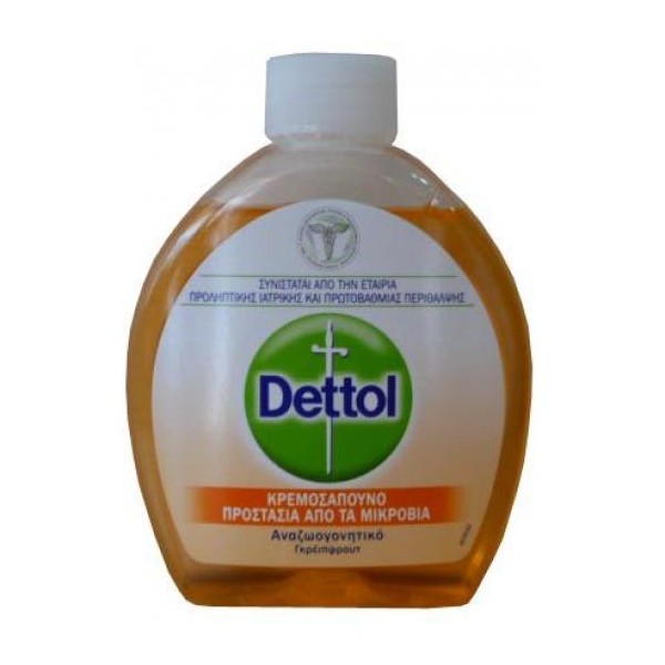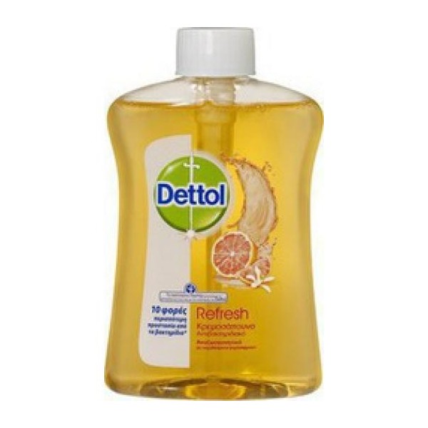 Ανταλλακτικό για το υγρό κρεμοσάπουνο Dettol με αναζωογονητικό άρωμα.Αντιβακτηριδιακό υγρό κρεμοσάπουνο Dettol.Απαλό για το δέρμα.10 φορές ποιο αποτελεσματικό στη καταπολέμηση των βακτηριδίων από τα κοινά σαπούνια.Με αναζωογονητικό άρωμα.Δερματολογικά ελεγμένο.250ml.