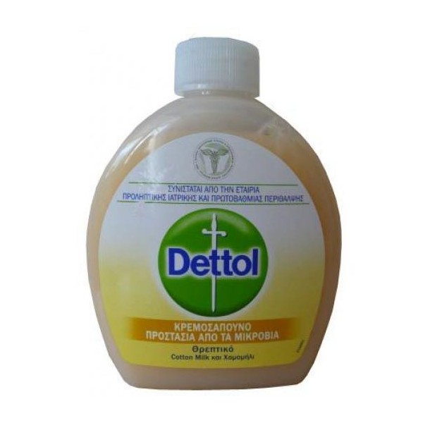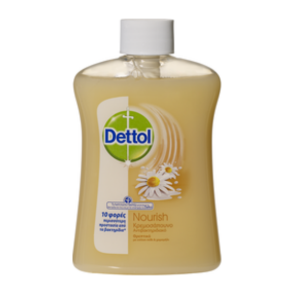 Ανταλλακτικό για θρεπτικό για τα χέρια υγρό κρεμοσάπουνο Dettol.Αντιβακτηριδιακό υγρό κρεμοσάπουνο Dettol.Απαλό για το δέρμα.10 φορές ποιο αποτελεσματικό στη καταπολέμηση των βακτηριδίων από τα κοινά σαπούνια.Θρεπτικό για τα χέρια.Δερματολογικά ελεγμένο.250ml.