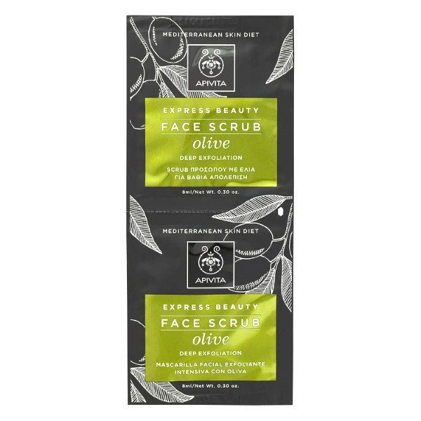 Scrub βαθιάς απολέπισης με κόκκους από κουκούτσια ελιάς, κατάλληλο για όλους τους τύπους επιδερμίδας,ιδανικό για ανθεκτικές, λιπαρές και μεικτές επιδερμίδες. Οι κόκκοι από κουκούτσια ελιάς και το σαλικυλικό οξύ καθαρίζουν σε βάθος τους πόρους ενώ απολεπίζουν την επιδερμίδα, απομακρύνοντας νεκρά κύτταρα και ρύπους από την επιφάνειά τους. Τα έλαια σταφυλιού και βερίκοκου χαρίζουν λάμψη και αντιοξειδωτική προστασία. Η βιταμίνη Ε και το πράσινο τσάι αναζωογονούν και ανανεώνουν την επιδερμίδα. Το βιολογικό αιθέριο έλαιο Λεβάντα έχει καταπραϋντική και μαλακτική δράση. Η μενθόλη χαρίζει αίσθηση φρεσκάδας.