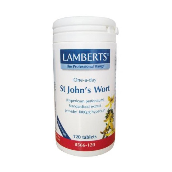 Το St John’s Wort (Hypericum perforatum) είναι ένα ανθεκτικό φυτό και καλλιεργείται σε πολλά μέρη του κόσμου, συμπεριλαμβανομένου και όλες τις Ευρωπαϊκές Χώρες και τις ΗΠΑ. Προτιμάει τις ηλιόλουστες περιοχές και έχει αμέτρητα φανταχτερά κίτρινα φύλλα.Μέχρι σήμερα, η μοναδική κλινική απόδειξη που υπάρχει για τη θεραπευτική αποτελεσματικότητα του St John’s Wort προέρχεται από τιτλοδοτημένα (standardized) σκευάσματα hypericin. Αυτό είναι και το συστατικό που χρησιμοποιείται ως σημάδι τιτλοδότησης στο προϊόν St John’s Wort της εταιρίας Lamberts.Κάθε ταμπλέτα παρέχει 1000μg hypericin.Τα περισσότερα προϊόντα που ανήκουν στην κατηγορία αυτή (μία ταμπλέτα/ημέρα) παρέχουν μόλις 900μg hypericin.Ταμπλετοποίηση με:DiCalcium Phospate, Cellulose, Croscarmellose Sodium, Hydroxypropyl Methylcellulose, Silicon Dioxide, Stearic Acid, Titanium Dioxide, MagnesiumStearate, Glycerin, Iron Oxides.Χρόνος αφομοίωσης: Λιγότερο από1ώρα..Κατάλληλο για χορτοφάγους.Αλλεργίες: Καμία.Προφυλάξεις:Δεν πρέπει να λαμβάνεται από έγκυες ή θηλάζουσες γυναίκες.Άτομα που παίρνουν άλλα συνταγογραφούμενα φάρμακα, θα πρέπει να συμβουλευτούν το γιατρό τους ή το φαρμακοποιό, πριν τη χρήση του συγκεκριμένου προϊόντος, γιατί μπορεί να επηρεάσει τον τρόπο δράσης τους.Φύλαξη:Να φυλάσσεται σε δροσερό και ξηρό περιβάλλον και να προφυλάσσεται απτό φως.