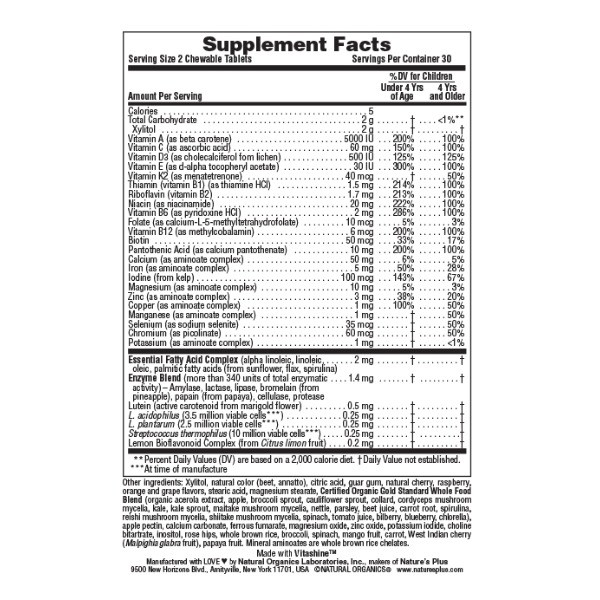 Η κλασική πολυβιταμινούχος φόρμουλα Animal Parade ενισχυμένη με βιταμίνες D3 και Κ2, περισσότερα ιχνοστοιχεία, πάνω από 20 βιολογικές τροφές,