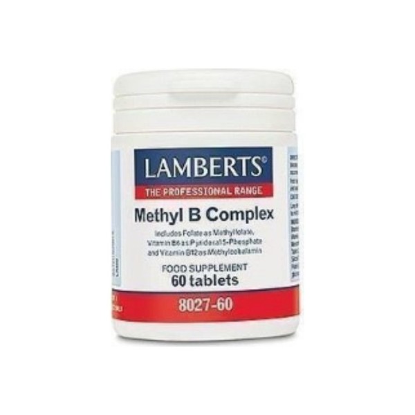 To Methyl B Complex της Lamberts, αποτελεί μια εξειδικευμένη διατροφική φόρμουλα με το σύνολο των βιταμινών του συμπλέγματος Β, η οποία παρέχει:• Φoλικό οξύ σε μορφή methylfolate (ή 5-MTHF) που αποτελεί την φυσική μορφή φoλικού οξέος, όπως δηλαδή το βρίσκουμε στα τρόφιμα ( πράσινα λαχανικά).• Βιταμίνη Β6 σε μορφή 5 φωσφορικής πυριδοξάλης (Pyridoxal 5-Phosphate (P5P), η οποία αποτελεί την ενεργό μορφή Β6• Βιταμίνη Β12 σε μορφή μέθυλο-κοβαλαμίνης, η οποία αποτελεί την μορφή της Β12 με την μέγιστη απορρόφηση και βιοδιαθεσιμότητα.Αρκετές από τις βιταμίνες του συμπλέγματος Β συμβάλλουν*:• στην φυσιολογική λειτουργία του ανοσοποιητικού (Βιταμίνες Β12,Β6,Φoλικό οξύ) ,• στην αντιμετώπιση της κούρασης και της κόπωσης (Βιταμίνες Β1,Β2,Β5,Β6,Β12,Φολικό οξύ)• και στην διατήρηση της φυσιολογικής ψυχολογικής λειτουργίας (Β1,Β2,Β6,Β12, Βιοτίνη, Φολικό οξύ).Όπως όλα τα σκευάσματα της Lamberts, παρασκευάζεται εντός του Ηνωμένου Βασιλείου σύμφωνα με τα αυστηρά πρότυπα της Φαρμακευτικής GMP (Pharmaceutical GMP).