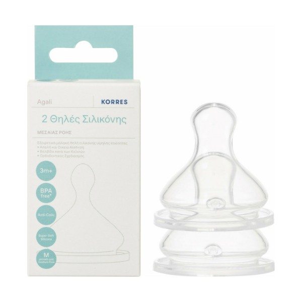 Korres Agali Θηλές Σιλικόνης Μεσαίας Ροής 3m+ 2τμχ