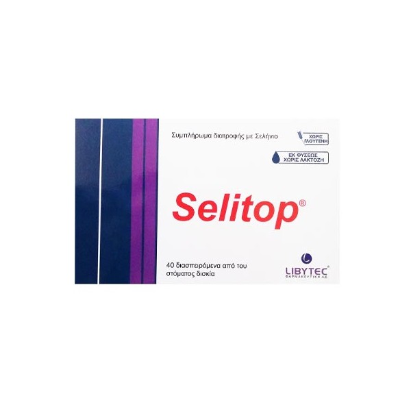 Το Selitop διασπειρόμενα από του στόματος δισκία είναι ένα συμπλήρωμα διατροφής οργανικού σεληνίου.