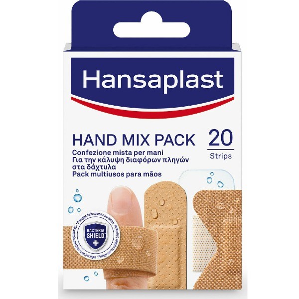 Το πακέτο Hansaplast Hand Mix περιέχει μια ποικιλία από αυτοκόλλητα επιθέματα κάλυψης τραυματισμών