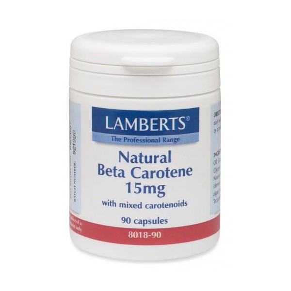 Όσον αφορά την διατροφή μας, η β-καροτίνη είναι μια από τις πιο σημαντικές χρωστικές ουσίες των φυτών και την συναντάμε σε όλο τον κόσμο των φυτών. Ανήκει στην οικογένεια των καροτενοειδών και όταν λαμβάνεται λειτουργεί σαν πρόδρομος της Βιταμίνης Α. Γι’ αυτό το λόγο συχνά αναφέρεται και ως «προβιταμίνη Α». Αυτή η μετατροπή από β-καροτίνη σε βιταμίνη Α λαμβάνει χώρα στο ήπαρ, τα νεφρά και τον βλεννογόνο του εντέρου, σε ποσοστό που ποικίλλει από άτομο σε άτομο ανάλογα με τις φυσιολογικές ανάγκες του καθενός.Η β-καροτίνη αναγνωρίζεται πλέον ως μία από τις πιο σημαντικές ουσίες, καθώς είναι ένα από τα κύρια αντιοξειδωτικά στη διατροφή μας. Τα αντιοξειδωτικά είναι ουσίες που βοηθούν το σώμα μας για να καταστρέψουν τις επιβλαβείς ελεύθερες ρίζες που παράγονται εντελώς φυσικά στο ανθρώπινο σώμα και οι οποίες, αν αναπτυχθούν ανεξέλεγκτα, μπορεί να βλάψουν ιστούς και όργανα.Η Natural Beta Carotene της Lamberts εκχειλίζεται στη φυσική της μορφή από το Dunaliella Salina, το οποίο είναι ένα ροζ φύκι που συναντάται στις επιφάνειες των θαλάσσιων λιμνών και περιέχει μικρές ποσότητες άλλων καροτενοειδών. Η ανάπτυξη του οργανισμού ελέγχεται από το υψηλής περιεκτικότητας σε άλας υδάτινο περιβάλλον, το οποίο προλαμβάνει τυχόν μόλυνση από παθογόνους μικροοργανισμούς.Συστατικά που χρησιμοποιούνται στη κάψουλα:Sunflower Seed Oil, Capsule Shell (Gelatin, Glycerin, Colour: Iron Oxides).Χρόνος αφομοίωσης: Λιγότερο από 30 λεπτά.Μαλακή ζελατινοειδής κάψουλα, καφέ χρώμα.Αλλεργίες: Καμία.Προφυλάξεις:Δεν πρέπει να λαμβάνεται από χρόνιους καπνιστές.Φύλαξη:Να φυλάσσεται σε δροσερό και ξηρό περιβάλλον και να προφυλάσσεται απτό φως.