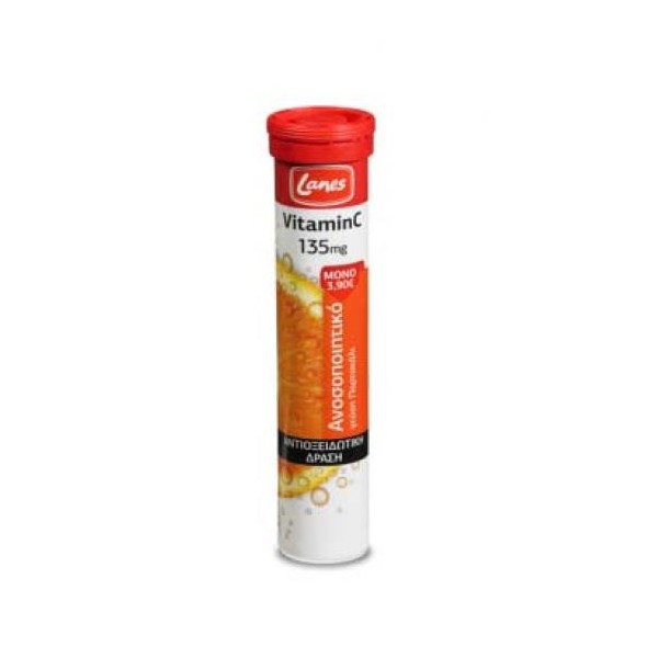 Η Lanes Βιταμίνη C 135mg είναι ιδανικό συμπλήρωμα για την αναπλήρωση τωνδιατροφικών ελλείψεων του οργανισμού στησυνιστώμενη ημερήσια δόση. Ενισχύει τηνάμυνα και την καλή λειτουργία του οργανισμού και δίνει ζωντάνια και ενέργεια. Χάρη στην πολύτιμη αντιοξειδωτική της δράση στην εξουδετέρωση των ελευθέρων ριζών, προστατεύει τα κύτταρα από το οξειδωτικό στρες, γεγονός που είναι συνδεδεμένο και με την αντιγηραντική της ικανότητα.