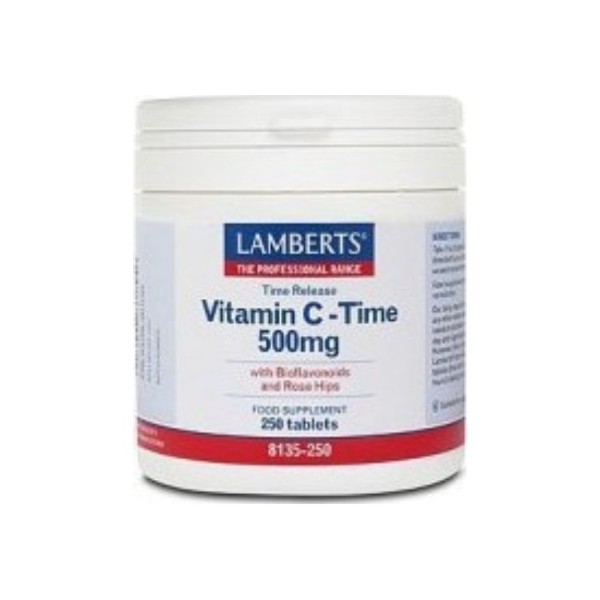 Η βιταμίνη C αποτελεί μια υδατοδιαλυτή βιταμίνη και μια από τις σημαντικότερες Βιταμίνες για τον ανθρώπινο οργανισμό καθώς αυξάνει την απορρόφηση του σιδήρου και συμβάλλει*:• στη διατήρηση της φυσιολογικής λειτουργίας του ανοσοποιητικού συστήματος κατά τη διάρκεια και μετά από έντονη σωματική άσκηση• στο φυσιολογικό σχηματισμό του κολλαγόνου για τη φυσιολογική λειτουργία των αιμοφόρων αγγείων, των οστών, των χόνδρων, των ούλων, των δοντιών και του δέρματος• στη φυσιολογική λειτουργία των μεταβολικών διεργασιών που αποσκοπούν στην παραγωγή ενέργειας• στη φυσιολογική λειτουργία του νευρικού και του ανοσοποιητικού συστήματος• στη φυσιολογική ψυχολογική λειτουργία• στην προστασία των κυττάρων από το οξειδωτικό στρες• στη μείωση της κούρασης και της κόπωσηςΟι ανάγκες του οργανισμού σε Βιταμίνη C είναι μεγαλύτερες από οποιαδήποτε άλλη υδατοδιαλυτή βιταμίνη και ο ιδανικός τρόπος πρόσληψης της είναι σε μικρές ποσότητες, συνεχόμενα κατά τη διάρκεια όλου του εικοσιτετραώρου, κάτι που είναι πολύ δύσκολο. Για την επίλυση του προβλήματος αυτού η Lamberts δημιούργησε τις ταμπλέτες Βιταμίνης C Time Release (ελεγχόμενης αποδέσμευσης) . Οι ταμπλέτες παράγονται μετά από μία ειδική διαδικασία, η οποία διατηρεί τα θρεπτικά στοιχεία σε μικροσφαιρίδια, επιτρέποντάς την σταδιακή απελευθέρωση τους κατόπιν της κατάποσης. Με τον τρόπο αυτό επιτυγχάνεται η σταδιακή και συνεχόμενη απορρόφηση της Βιταμίνης C η οποία διαρκεί για περίπου 6 με 8 ώρες.To σκεύασμα Vitamin C Time Release 500mg της Lamberts παρέχει εγγυημένα 500mg Βιταμίνης C σε δισκία ελεγχόμενης αποδέσμευσης και μία σημαντική ποσότητα βιοφλαβονοειδών (ρουτίνη, κερσετίνη, κιτρίνη και εσπεριδίνη) τα οποία συμβάλλουν στην απορρόφησή της από τον οργανισμό και σκόνη καρπών αγριοτριανταφυλλιάς (Rose Hips). Όπως όλα τα σκευάσματα της Lamberts, παρασκευάζεται εντός του Ηνωμένου Βασιλείου σύμφωνα με τα αυστηρά πρότυπα της Φαρμακευτικής GMP (Pharmaceutical GMP).