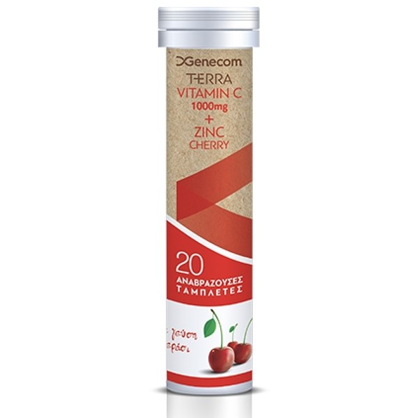 Genecom Terra Vitamin C 1000mg + Zinc 20 Αναβράζουσες Ταμπλέτες Με Γεύση Κεράσι