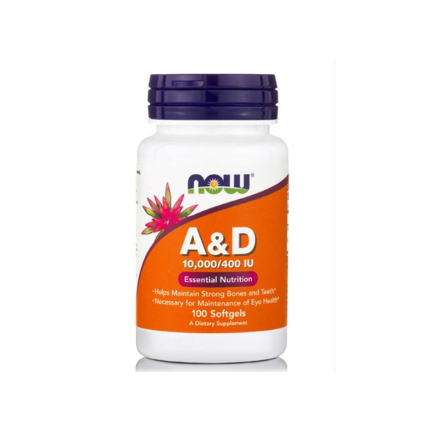 Η βιταμίνη A είναι απαραίτητη για τη διατήρηση της καλής υγείας του επιθηλίου που βρίσκεται στα μάτια, το δέρμα, το αναπνευστικό σύστημα, το γαστρεντερικό και το ουροποιητικό. Η βιταμίνη D επιταχύνει την απορρόφηση του ασβεστίου και την μεταφορά του στα οστά. Έτσι, με τις Vitamin A & D της Now θα επιτύχετε ενίσχυση: Των δοντιών σας Των οστών σας Των οφθαλμών σας Του ανοσοποιητικού  σας Του δέρματος και των μαλλιών σας