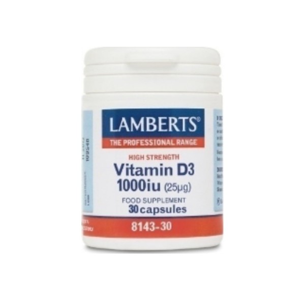 Η Vitamin D 1000iu της Lamberts αποτελεί ένα κλινικά επιβεβαιωμένο συμπλήρωμα διατροφής το οποίο παρέχει εγγυημένα 1000iu (25μg) Βιταμίνης D σε μορφή χοληκαλσιφερόλης (D3) και όπως όλα τα σκευάσματα της Lamberts, παρασκευάζεται εντός του Ηνωμένου Βασιλείου σύμφωνα με τα αυστηρά πρότυπα της Φαρμακευτικής GMP (Pharmaceutical GMP).Η βιταμίνη D μπορεί να ληφθεί μέσω της διατροφής ή να συντεθεί από τον οργανισμό κατόπιν της έκθεσης του δέρματος στο ηλιακό φως (UVB) και αποτελεί μια από τις σημαντικότερες Βιταμίνες για τον ανθρώπινο οργανισμό καθώς συμβάλλει*:• στην φυσιολογική λειτουργία του ανοσοποιητικού συστήματος• στην φυσιολογική απορρόφηση και χρησιμοποίηση του ασβεστίου και του φωσφόρου• στην διατήρηση των φυσιολογικών επιπέδων ασβεστίου στο αίμα• στην διατήρηση της φυσιολογικής κατάστασης των οστών• στην φυσιολογική κατάσταση των μυών• στην διατήρηση της φυσιολογικής κατάστασης των δοντιών• στην κυτταρική διαίρεση