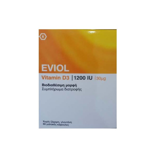 Διατήρηση των φυσιολογικών επιπέδων του ασβεστίου.Οι μαλακές κάψουλες EVIOL Vitamin D3 περιέχουν τη λιποδιαλυτή βιταμίνη D3 (χοληκαλσιφερόλη) που συμβάλλει στη διατήρηση των φυσιολογικών επιπέδων ασβεστίου στο αίμα, καθώς επίσης και στην ομαλή απορρόφηση του ασβεστίου και του φωσφόρου. Επιπλέον, η βιταμίνη D3 παίζει σημαντικό ρόλο στη διατήρηση της φυσιολογικής κατάστασης των οστών και των δοντιών. Κατάλληλο για άτομα με έλλειψη σε βιταμίνη D, με μειωμένη έκθεση στον ήλιο, με ενδείξεις οστεοπόρωσης και ηλικιωμένους.