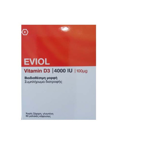 Διατήρηση των φυσιολογικών επιπέδων του ασβεστίου.Οι μαλακές κάψουλες EVIOL Vitamin D3 περιέχουν τη λιποδιαλυτή βιταμίνη D3 (χοληκαλσιφερόλη) που συμβάλλει στη διατήρηση των φυσιολογικών επιπέδων ασβεστίου στο αίμα, καθώς επίσης και στην ομαλή απορρόφηση του ασβεστίου και του φωσφόρου. Επιπλέον, η βιταμίνη D3 παίζει σημαντικό ρόλο στη διατήρηση της φυσιολογικής κατάστασης των οστών και των δοντιών. Κατάλληλο για άτομα με έλλειψη σε βιταμίνη D, με μειωμένη έκθεση στον ήλιο, με ενδείξεις οστεοπόρωσης και ηλικιωμένους.