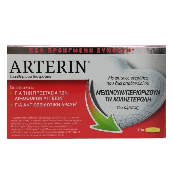 Γι 'αυτό το Arterin είναι ένα αποτελεσματικό και καλά ανεκτό συμπλήρωμα διατροφής, που δημιουργήθηκε για άτομα που θέλουν να διαχειρίζονται αποτελεσματικά τα επίπεδα της χοληστερόλης τους ως μέρος ενός υγιεινού τρόπου ζωής. Με βάση φυσικά εκχυλίσματα και αντιοξειδωτικά, για τη μείωση και/ή τη διατήρηση της χοληστερόλης.